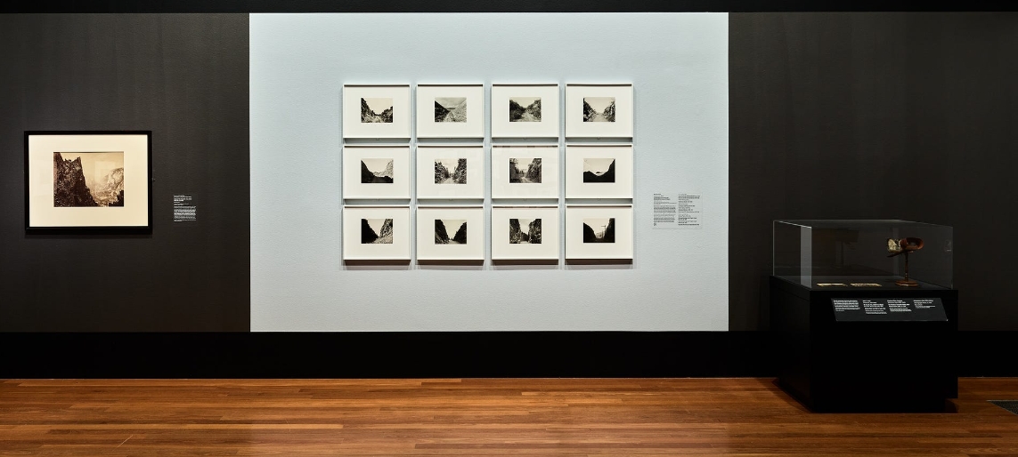 The multi-section exhibit, which features more than 100 of Adams’ iconic black-and-whites, also showcases works by 23 contemporary artists, some of whom, like Mark Klett and Byron Wolfe, have created collages that offer a colorful time-capsule of Yosemite. Others’ shots were taken from spots that Adams had previously photographed. Also included are prints by 19th century landscape photographers who influenced him (Carleton E. Watkins, John K. Hiller, and Frank Jay Haynes, for example).