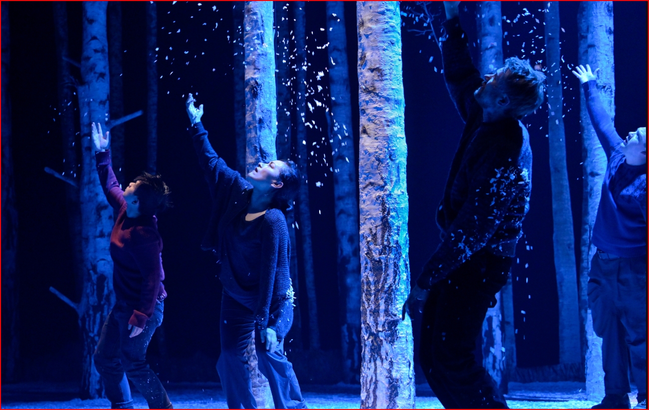 GM: Etta Murfitt’s choreography is wonderful and eclectic, ranging from almost hoe-down, to Irish jig, to nonspecific elegance. A lovely and diverse musical score by Ian Ross keeps the play moving. The casting of eleven very accomplished members of the Wise Children’s troupe was a joy, as was watching them effortlessly morph into the manifold characters in the novel. Heathcliff (Liam Tamne, of multi-national background) is particularly inspired casting, making the orphan Heathcliff the dark, brooding, and very sexy creature he was — unlike anyone else in the Yorkshire moors.