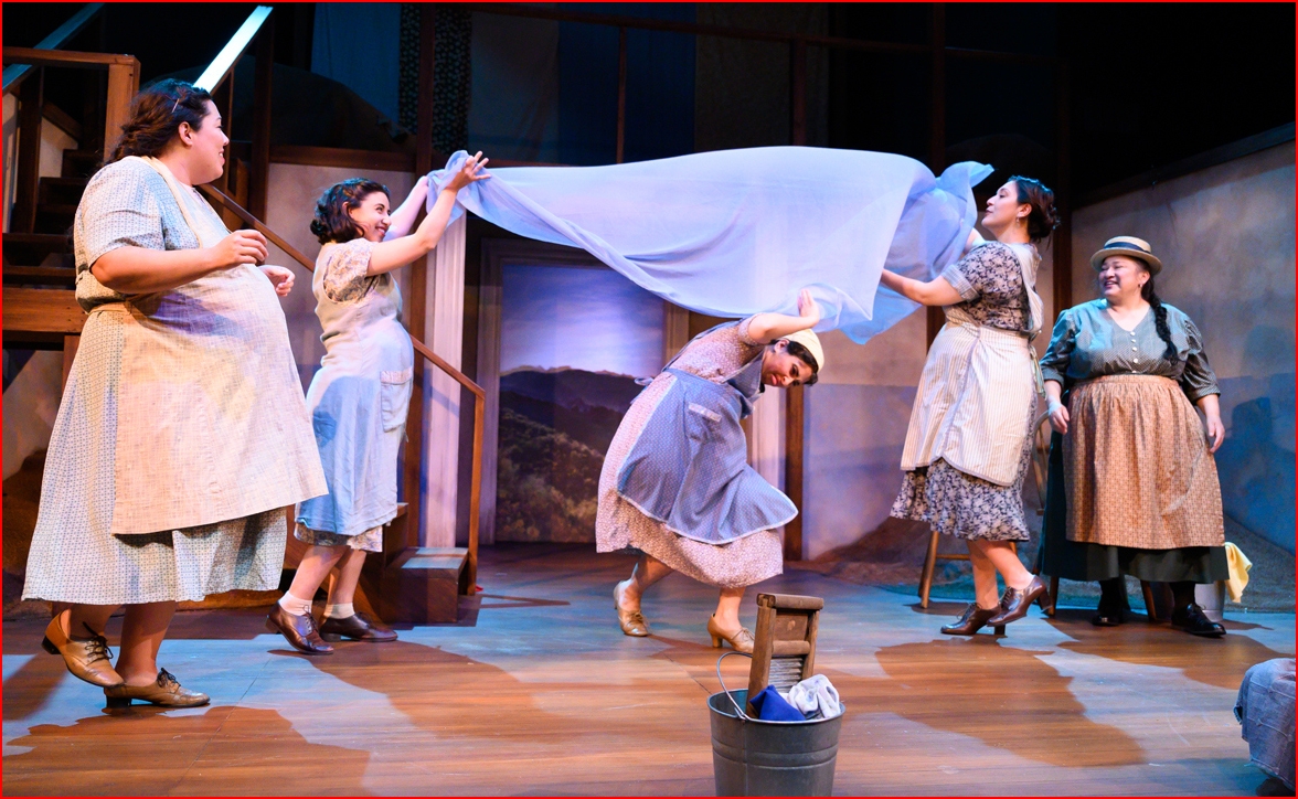 Joyce Domanico-Huh, Lauren Andrei Garcia, Alexandra Lee, and Sharon Shao are pure delights, bringing the language of their world alive. Did Pastor, played by Chuck Lacson, place the camera in the bathroom? That is not resolved until the final moments of this 90-minute one-act. To find out, you must see the play, as this reviewer certainly isn’t going to give it away.
