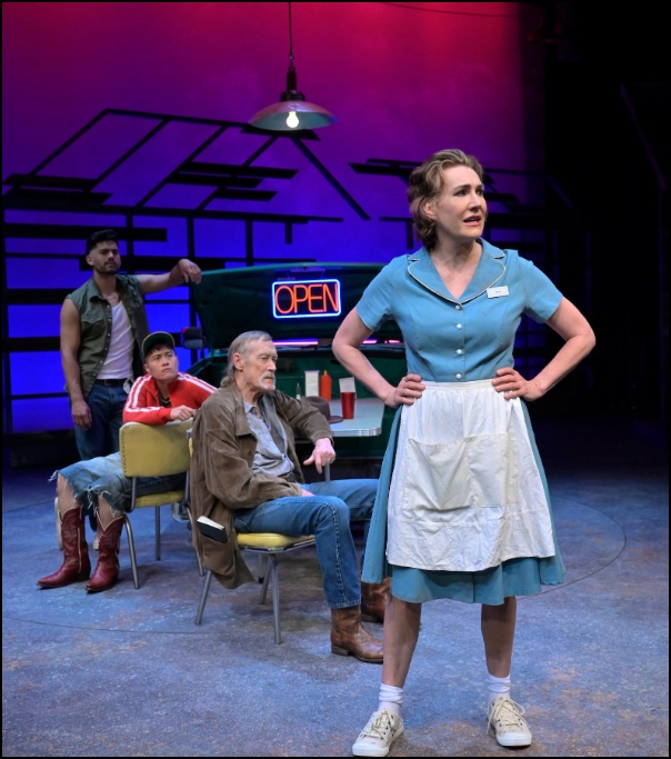 The production could benefit from multiple viewing. As entertaining as the visual aspects of the truck with visible tailpipe exhaust and revolving set provide (thanks to scenic designer Tanya Orellana), this reviewer found that the horizontal lighting on both sides of the stage simply distracted focus from the main action. And while comic relief from Mo (a standout Lindsay Rico) and multiple roles notably performed by Courtney Walsh, Cher Alvarez Daniel Duque-Estrada, and Benny Wayne Sully add variety, Mother Road’s chorus could maybe use a bit more coaching to stay on key in the final sung number. Stronger consonants would make quick-paced ensemble numbers easier to understand, too.
