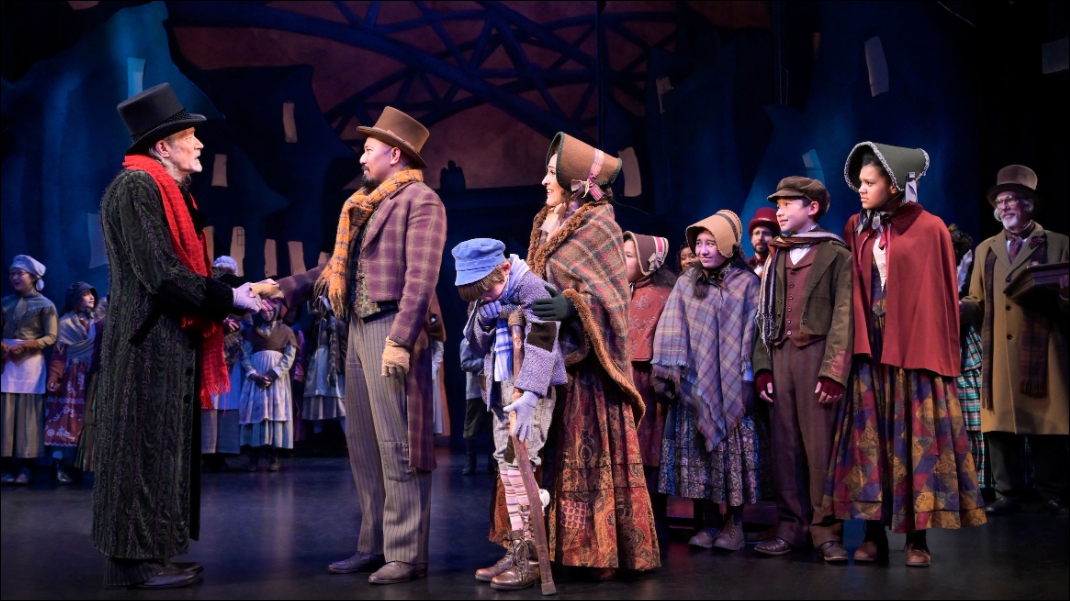 The sumptuous, big-scale production stars James Carpenter as the dour miser Ebenezer Scrooge.
