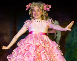 Despite any difficulties, many fine actors gave solid performances in Kinky Boots. In addition to knockout vocals by Jaye and Craven, outstanding voices that carried through the amphitheater included Imri M. Tate, Gillian Eichenberger, David Schiller, Anna Joham, and local favorite Sean O’Brien. They perform on a fantastic stage set, done by Andrea Bechert, which revolves as the scenes require.