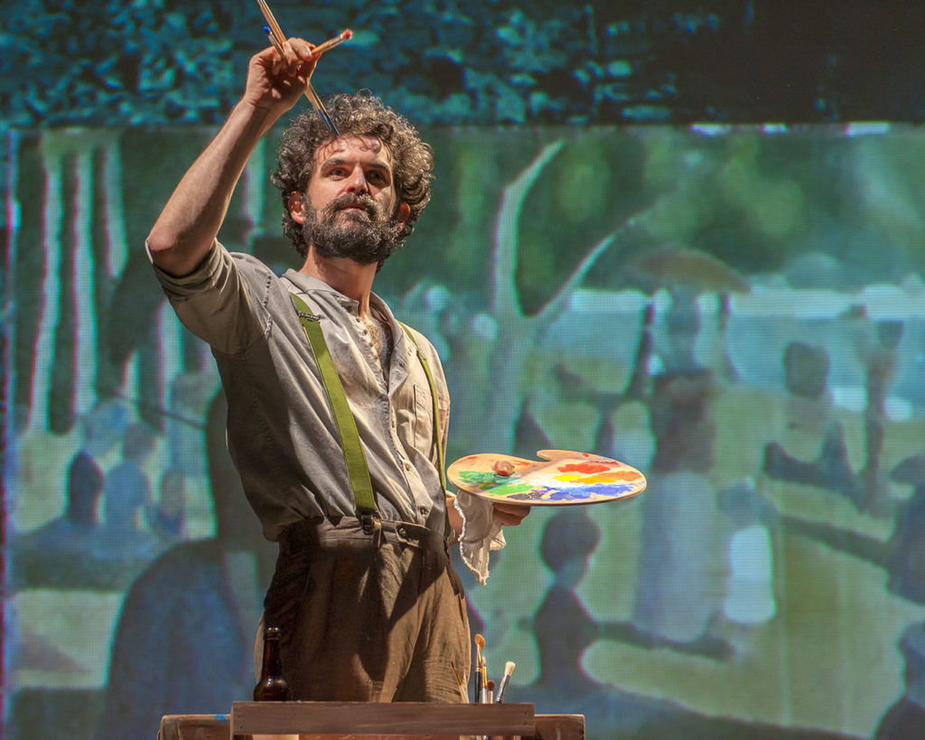 Our leading man appears, apparently ready to begin the show, then is blacked out by the lighting, comes back into view, then falls asleep in a chair while SFP Artistic Director Bill English gives the welcoming speech. What’s happening? Are they confused? Are they ready for opening night?