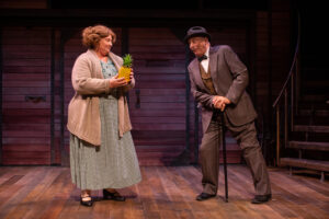 For the play to reach its intended comedy payoff, the audience should/must be laughing at Harry’s final comeuppance at the hands of these “born yesterday” newbies, Billie and Paul. Without his outraged sputtering, day-late-and-dollar-short, speechless hair-tearing, aghast flummoxing and proverbial pie-in-the-face downfall the audience is robbed of the comedy crescendo to which this tight script leads. He’s the real country bumpkin boob in this show.