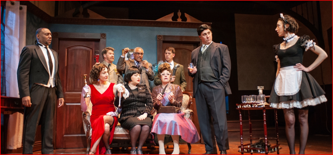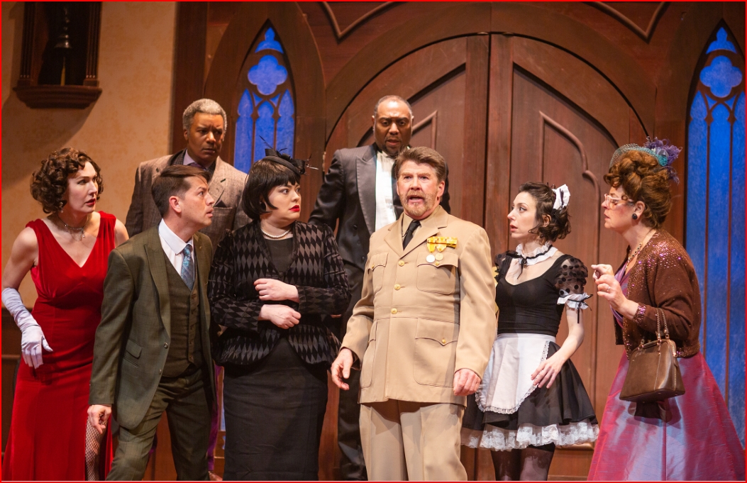 When the show-within-a-show actually begins, it’s an impressive setting for The Murder at the Haversham Manor, produced by a dedicated theatre troupe. The laughs tumble over one another when doors don’t open, props are misplaced, something falls off a wall, and a corpse can’t lie still when his hand is accidentally stepped on. Still, the amateur actors bravely soldier on, hoping to fulfill their roles and pull off a successful performance.