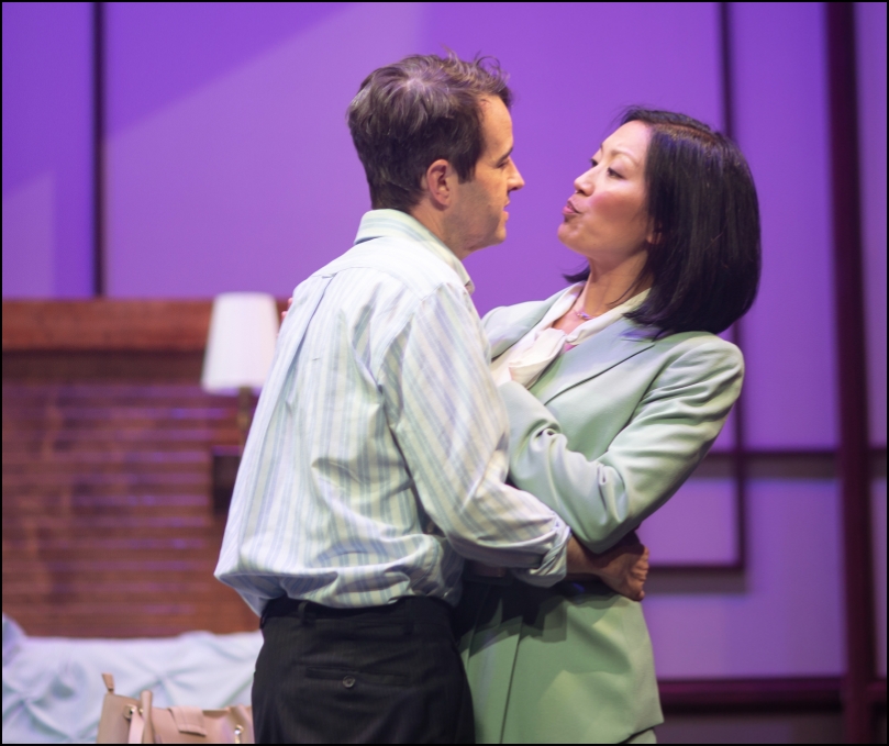 Even so, it’s one of several anachronisms in the show. Another is the ultra-long cigarette that Tom habitually smokes, a product that didn’t hit the market until the 1980s. Jomar Tagatac is a fabulous actor with wonderful delivery. He appears frequently at most major SF and Bay Area theaters, but it’s a big leap of faith to accept him as a 20-something aspiring writer. He’s more like an uncle to Laura than a brother and former high-school classmate. Hodgson is also a talented prolific actor and nails the subtlety of the Jim O’Connor role, without bringing anything new.
